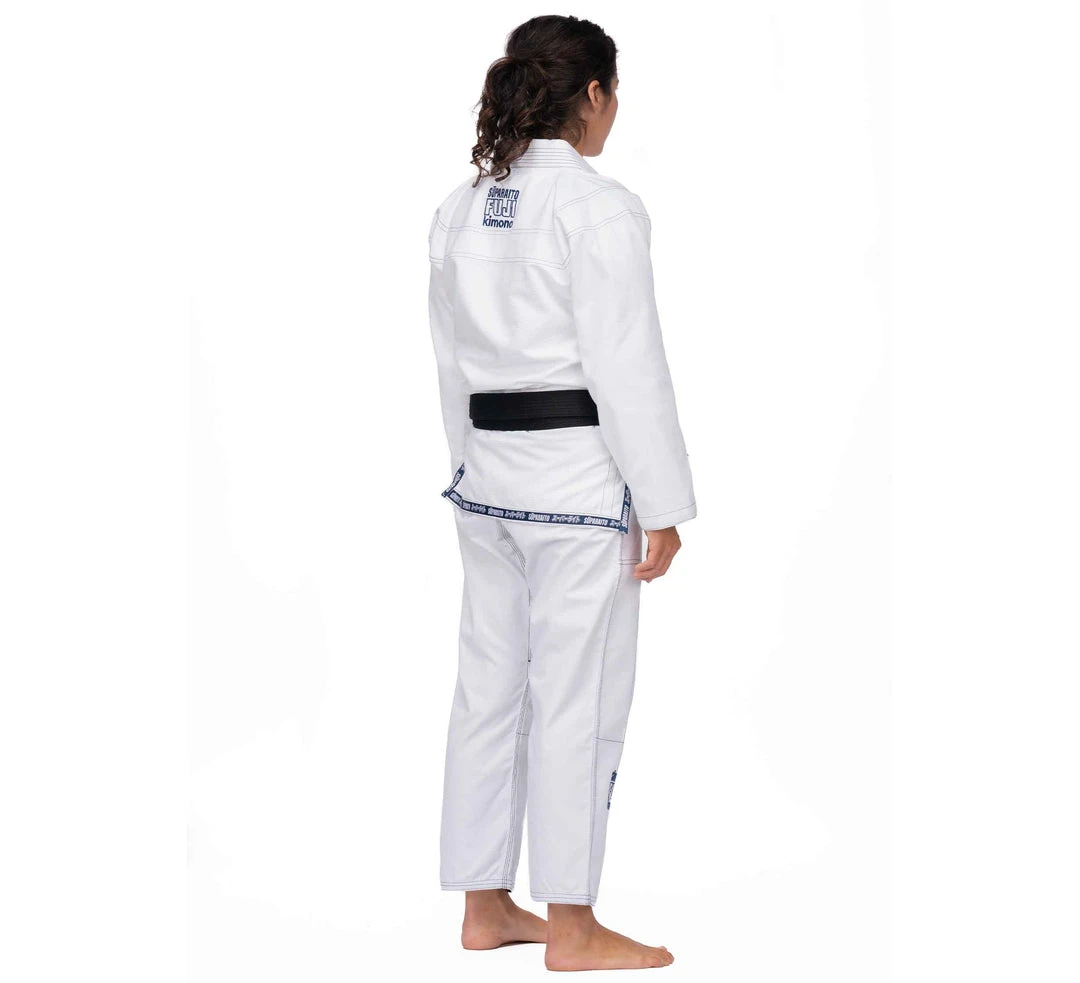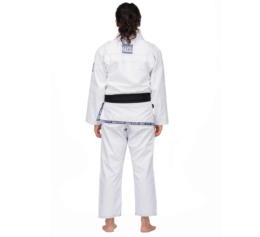 This gi’s design features contrast Stitching on Jacket & Pants, a Suparaito logo on the jacket, skirt, and pants. FUJI logos on Sleeve, Back of Neck, and Pants. Lastly, and outside taping on the skirt.