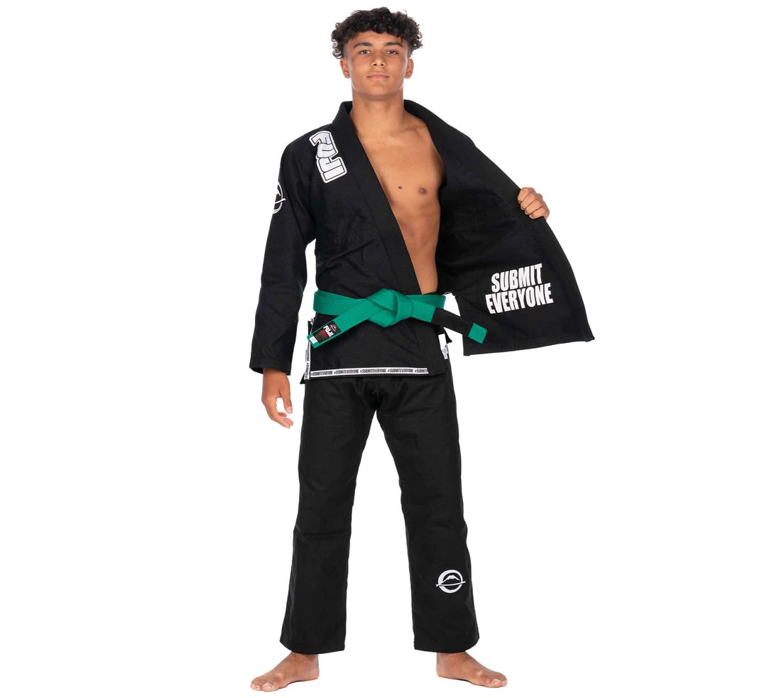 FUJI’s Submit Everyone BJJ Gi is the ideal uniform for both training and competition. Years in the making, this uniform features everything you love about FUJI BJJ gis perfectly crafted into one! The jacket is ultra-lightweight that displays a woven die cut FUJI patch on the collar as well as a ribbon on the bottom of the skirt. On the back shoulder is a large embroidered FUJI emblem. The final touch on the jacket is the inside print which motivates you to SUBMIT EVERYONE!