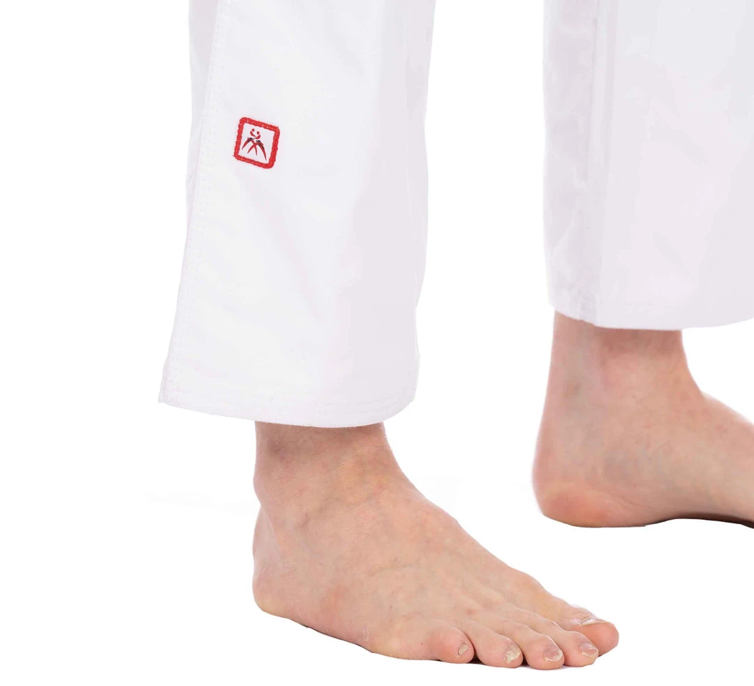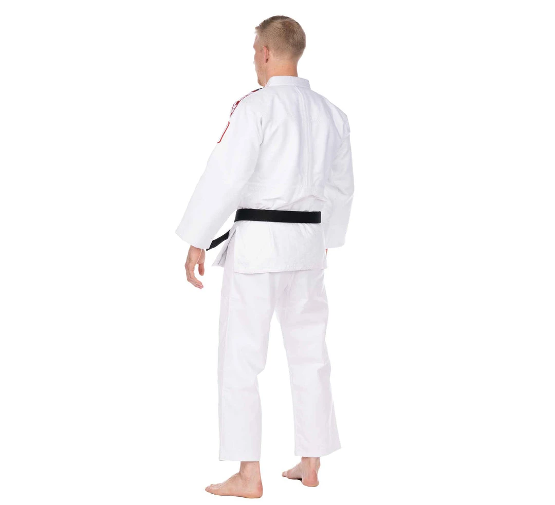 Each gi features the official USA Judo woven patch on the sleeves along with a woven American Flag FUJI patch. The inside of the gi features an American Judoka print in Navy along with a USA Judo x FUJI Sports label. The pants feature the USA Judo Judoka woven patch.