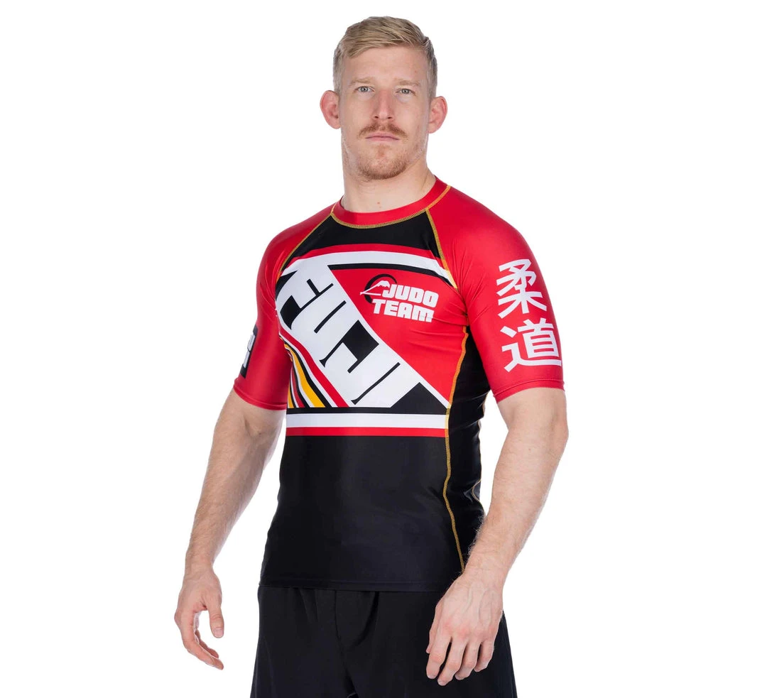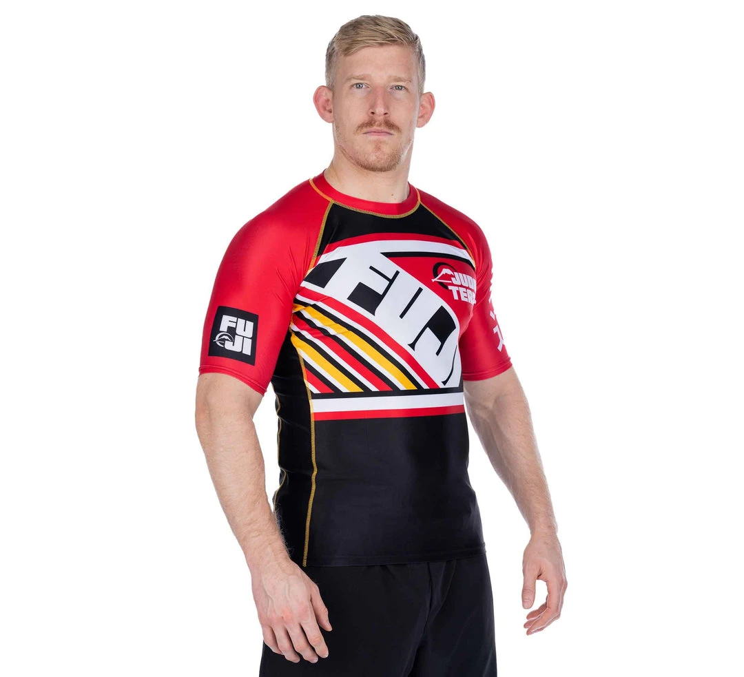 The sky is the limit when it comes to your potential. The FUJI Skyline Rashguard features a dynamic and bold design perfect for the up and coming grappler. Featuring a FUJI print on the front and back, judo kanji on the sleeve, and a very bold colorway.Â