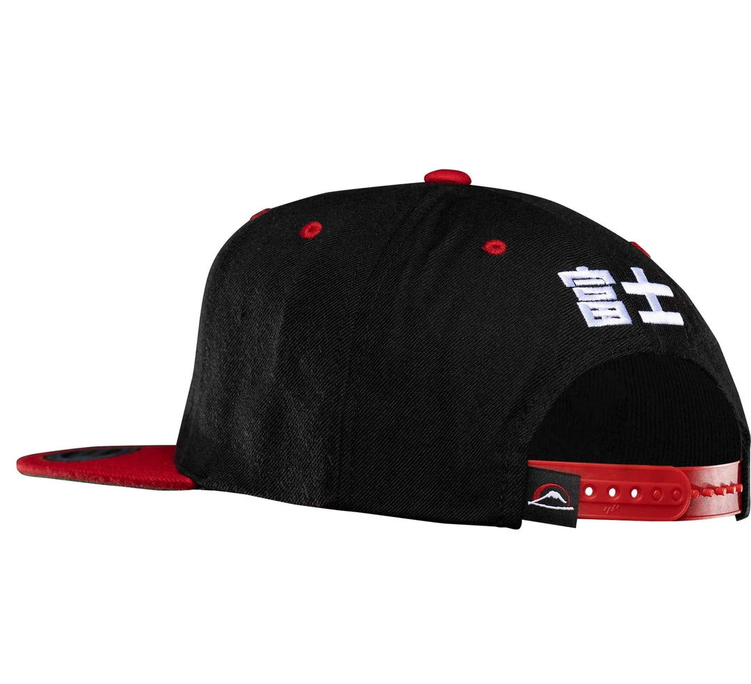 The Jiu-Jitsu Team Flatbrimmed Hat features a 6-panel design made from 80% acrylic and 20% wool fabric and a plastic snap adjustable closure for a snug, secure fit.